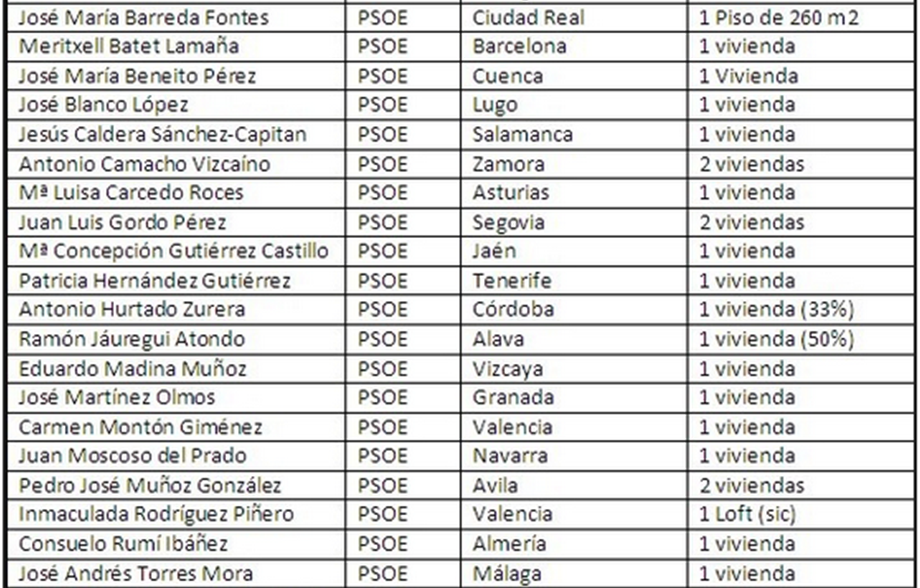 Aquí hay 20 nombres y apellidos, 20 Diputados socialistas que supuestamente teniendo vivienda en Madrid están cobrando 1.823,36 euros de nuestros impuestos. Aquí hay 20 posibles razones por las que cuatro millones de españoles nos dieron la espalda en las últimas elecciones generales. Aquí hay 20 compañeros y compañeras que nos deben una explicación, quiero creer que la hay y si no tienen una plausible, su inmediata e irrevocable dimisión.